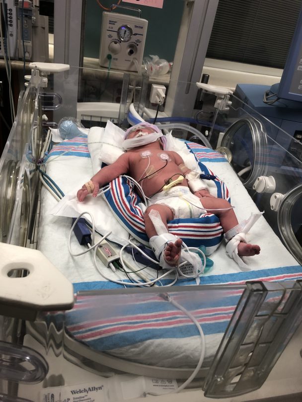 At 17 weeks we found out that our daughter had Down Syndrome. I remember the day my doctor broke the news to us, I cried, I was in disbelief, I couldn’t believe that my baby had Down syndrome. I was lost for words, I couldn’t even think straight. The doctor insisted to abort the baby since I still had time to terminate my pregnancy and we thought about it. I started to think how we were going to do it, I have 4 kids and to find out that I would be having a baby with disabilities, that would be a lot for us to handle. I started doing my research about Down syndrome since I had no idea what it was and I got really scared of all the things I was reading of what to expect with a child that has DS. I was even convinced that it was going to be very hard if I decided to keep my baby I started to cry again I was so devastated. My husband said to me we are going to keep the baby, we will figure it out & we will make it work and so we started to pray for Destiny’s health. Throughout my pregnancy God gave me peace and reassurance that Destiny was going to be ok. Little by little I started to get past the bad news and all the disappointment. I started to prepare myself, mentally & emotionally for my little girl’s arrival. On 12/12/18 Destiny was born at 32 weeks. It was very unexpected.