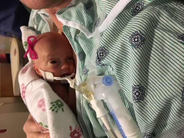 Not knowing if Lily would even survive birth, she was born weighing 504 grams.  Lily was intubated a few hours after birth which caused bronchopulmonary dysplasia.  Which is when her lungs became irritated and weren’t able to develop properly.  “Her lungs were so incredibly underdeveloped that the ventilator that was being used to keep her alive was also damaging and scarring her lungs.”  Jess said.