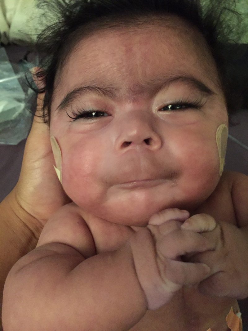 Zacchaeus has many of these characteristics including a unibrow, very long eyelashes, small fingers and toes, cleft palate and a heart condition.